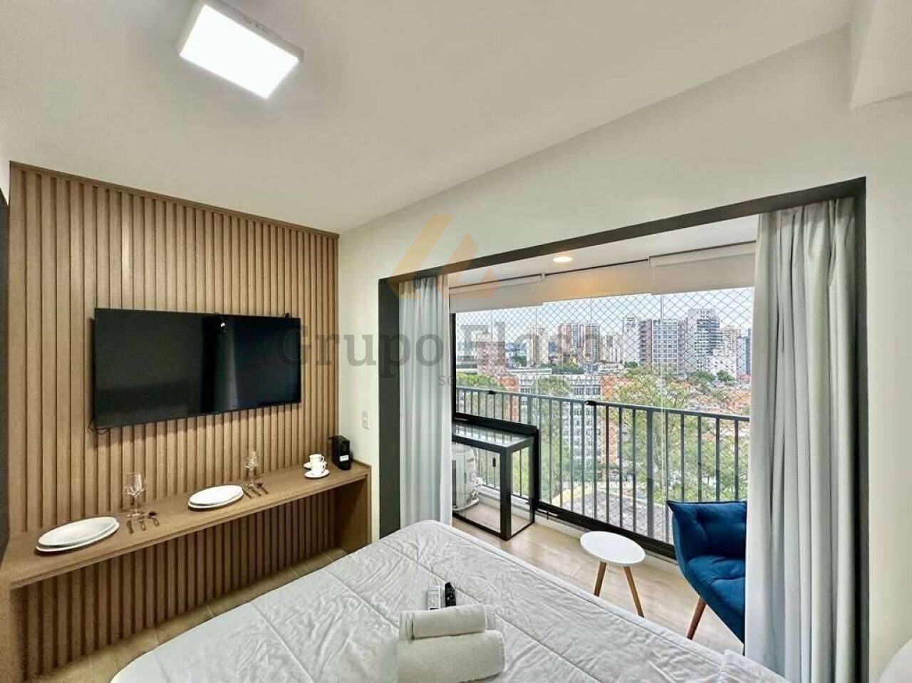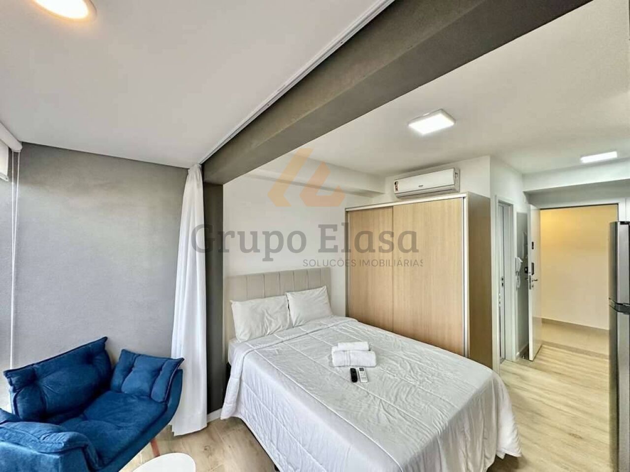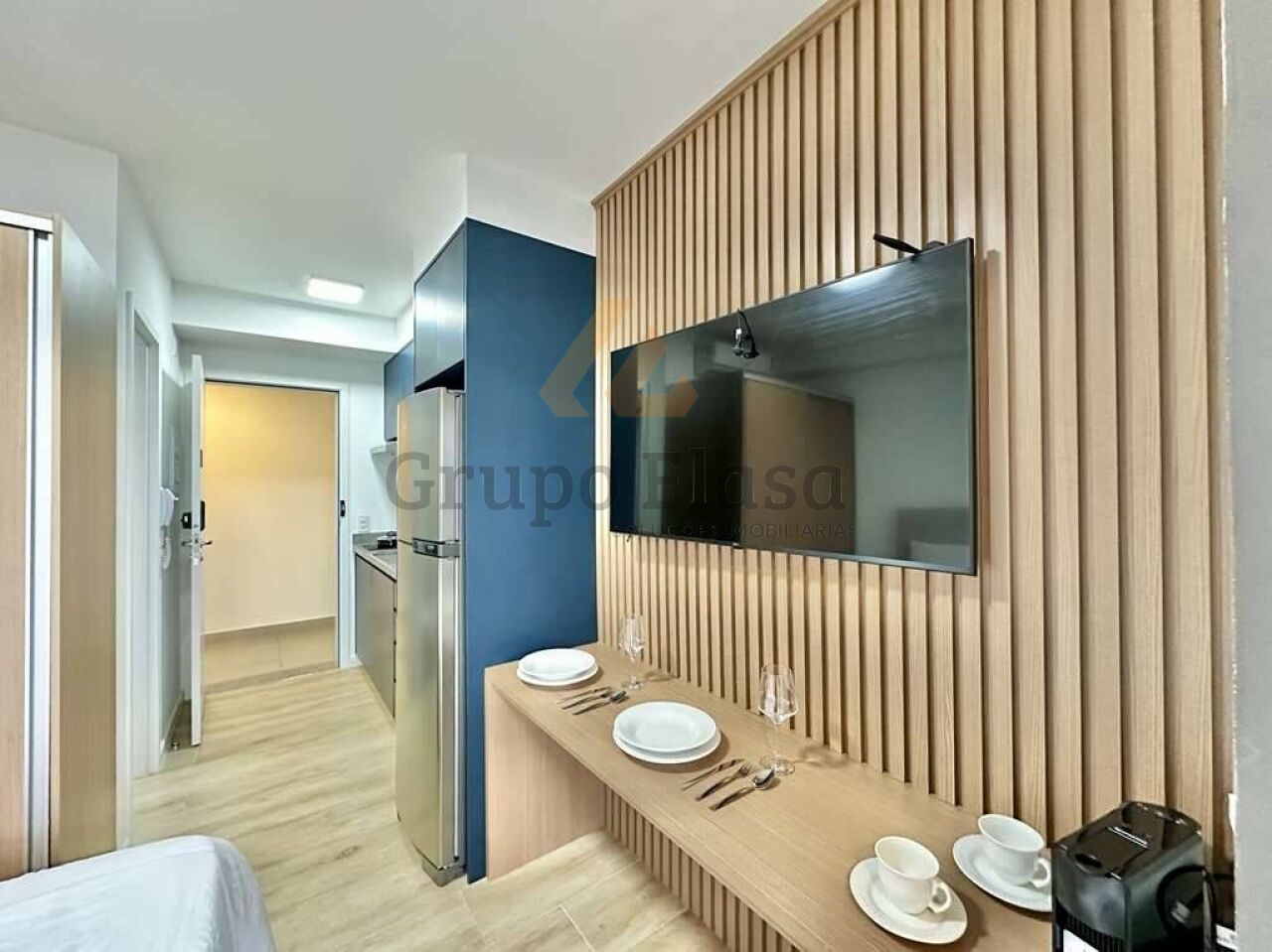 Charmoso e funcional, este studio compacto foi planejado para oferecer conforto e praticidade desde o primeiro instante. Ambientes integrados com iluminação natural abundante, acabamento moderno e paleta neutra que amplia a sensação de espaço. Mobiliado com sofá-cama, cama com gavetas, armário embutido, escrivaninha multipurpose e mesa de jantar retrátil ? tudo otimizado para aproveitar cada centímetro. Cozinha americana equipada com torre de eletrodomésticos (geladeira, cooktop, micro-ondas), bancada em pedra, armários planejados e área de serviço compacta com máquina de lavar. Banheiro contemporâneo com box de vidro, revestimentos atuais e boa ventilação.