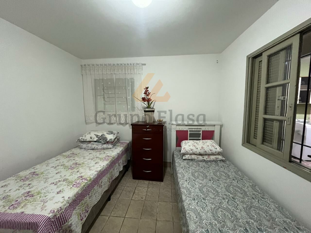 Ao entrar na casa há uma sala de estar, logo em seguida encontram-se o banheiro, os 2 dormitórios e a cozinha. Após, é possível acessar a área de serviço e a escada para os outros 2 dormitórios do piso superior. O piso superior ainda conta com 1 banheiro para os dormitórios. A área de serviço é ampla e com boa ventilação.